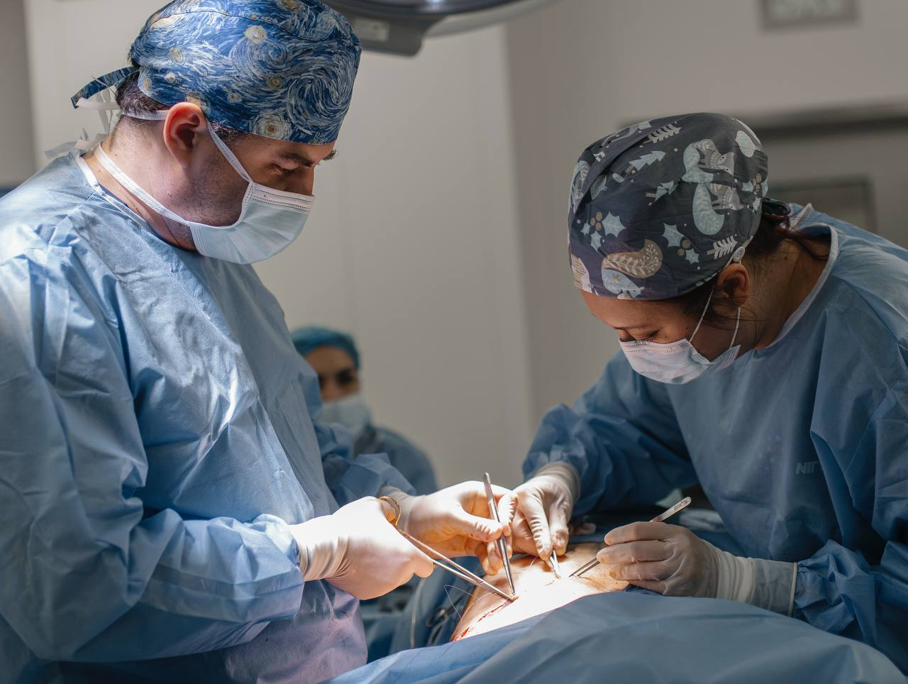 Команда хирургов M-Clinic во время проведения операции по онкопластике молочной железы.
